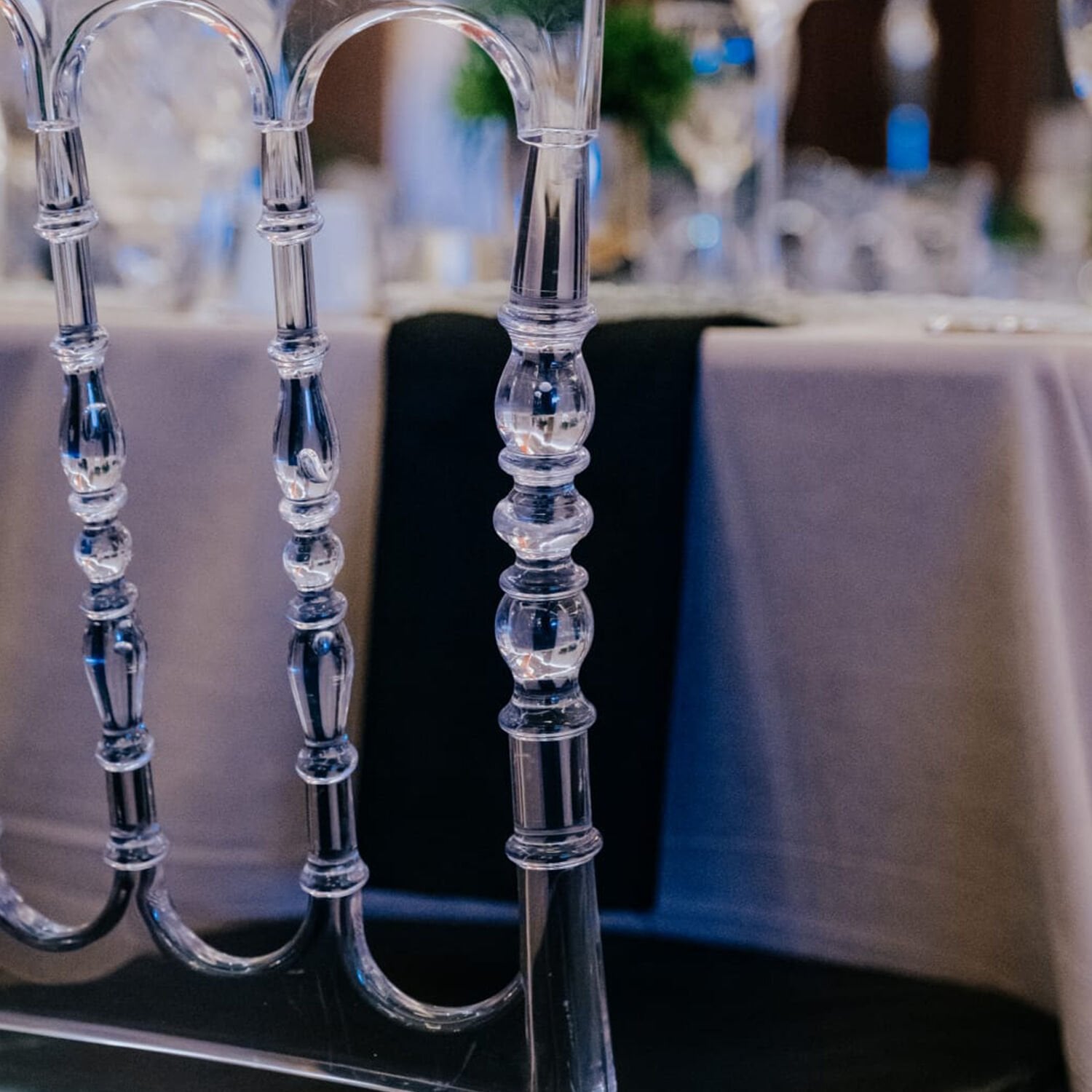 Şeffaf Napolyon Sandalye, masa düzenlerinde bütünlük sağlar ve masa süslemelerinin ön plana çıkmasına yardımcı olur. Özellikle cam, beyaz veya gold detaylı masa konseptleriyle mükemmel uyum yakalar. Fotoğraf çekimlerinde arka planı bozmayan yapısı sayesinde düğün ve nikah organizasyonlarında sıkça tercih edilir.