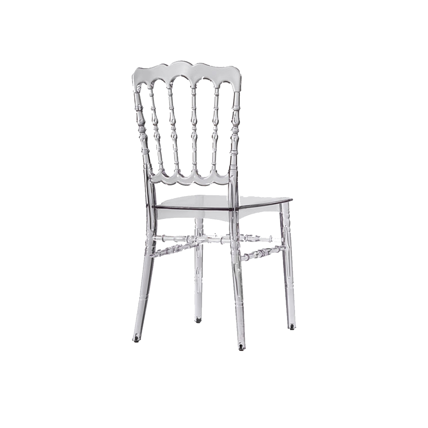 Şeffaf Napolyon Sandalye, ışığı geçiren yapısı sayesinde özellikle açık hava organizasyonlarında mekânı daha ferah ve aydınlık gösterir. Kır düğünlerinde doğal ortamla kusursuz uyum sağlarken, ceremony alanlarında sade ama etkileyici bir atmosfer oluşturur. Modern ve minimal dekorasyon anlayışını benimseyen organizasyonlarda güçlü bir görsel etki yaratır.