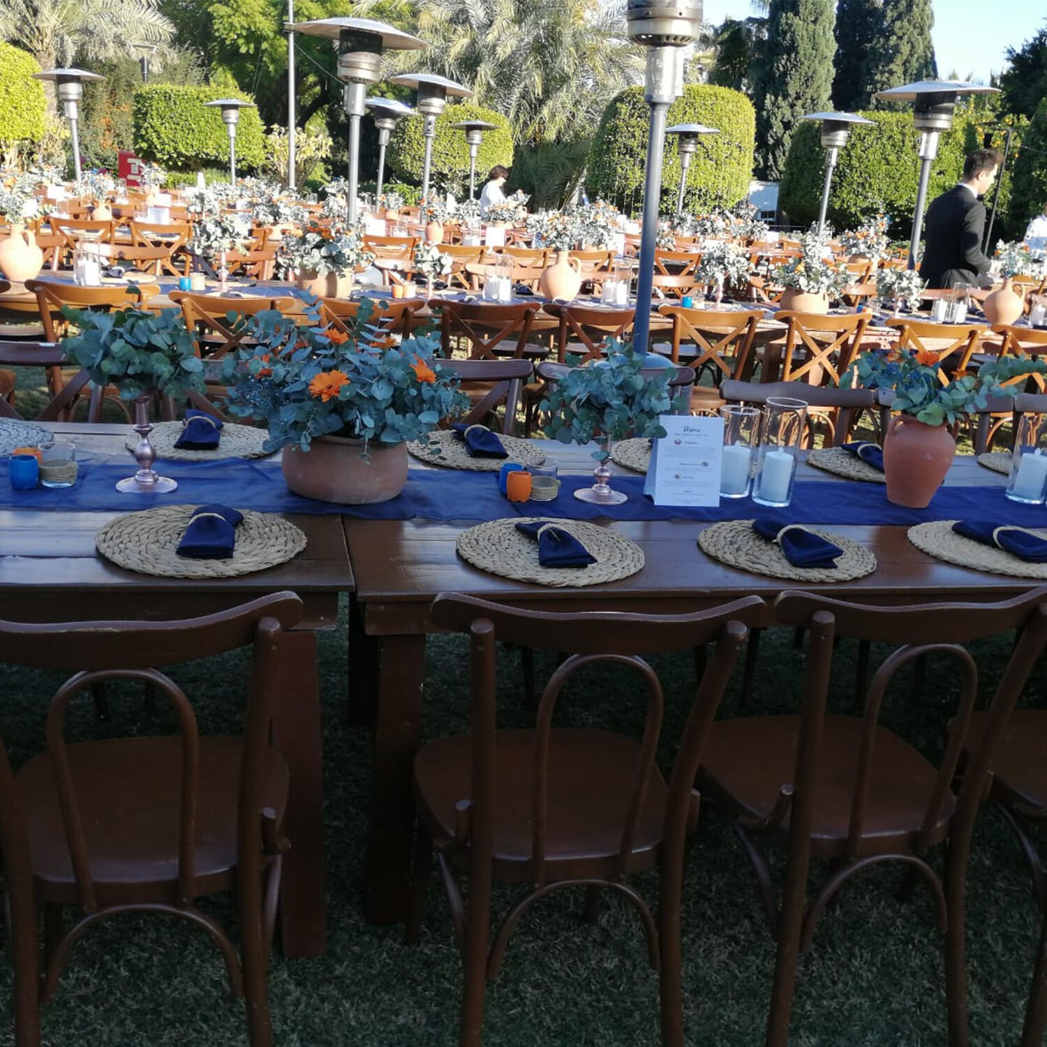 Doğal ahşap rengi sayesinde yeşil alanlara, bahçe organizasyonlarına ve rustik mekanlara kusursuz uyum sağlar. Minimal çizgileriyle konsepti bozmadan mekâna sıcaklık katar; hem modern hem de vintage organizasyonlarda rahatlıkla kullanılabilir.