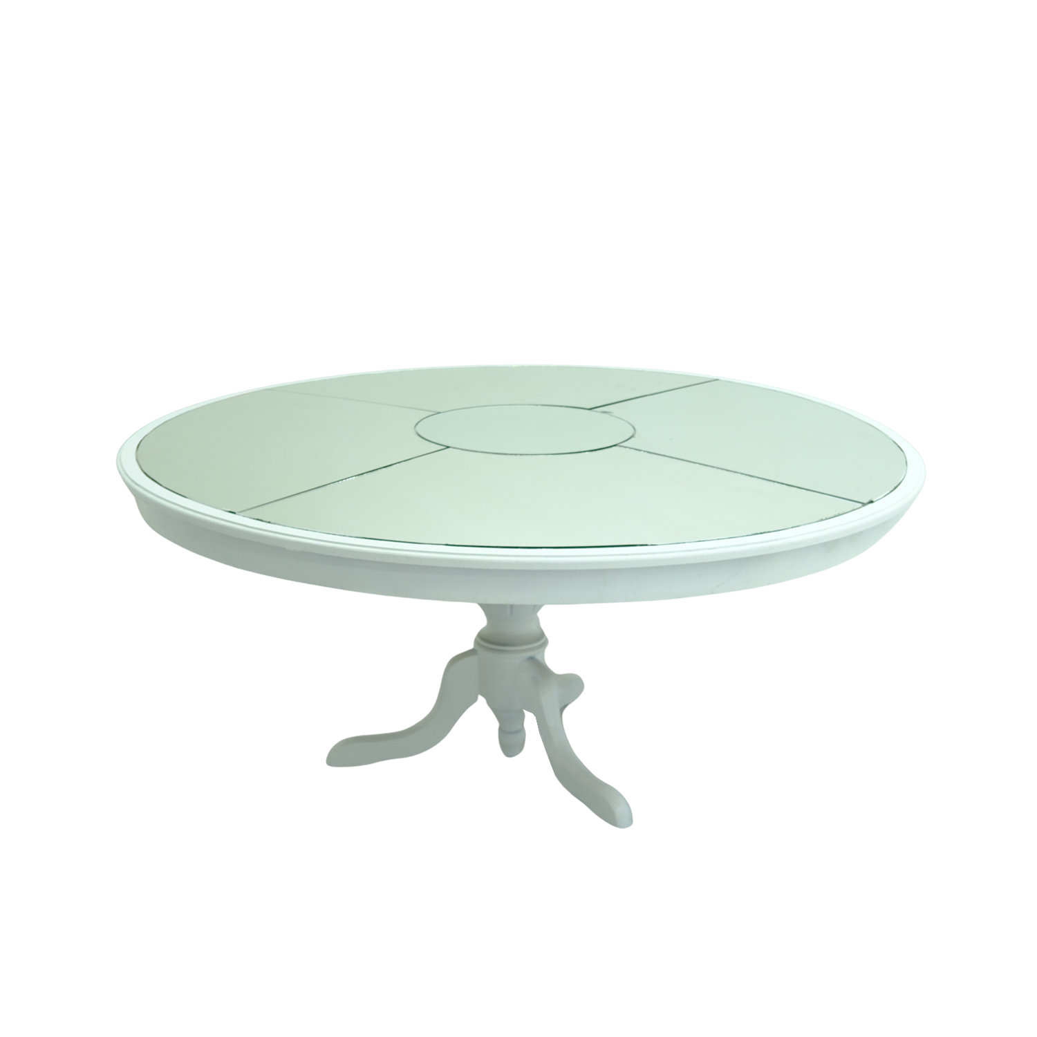 Yuvarlak aynalı masa geniş ve yuvarlak formu sayesinde misafirler için konforlu bir oturma düzeni sunarken dayanıklı yapısı sayesinde hem iç hem dış mekân organizasyonlarında güvenle kullanılabilir.